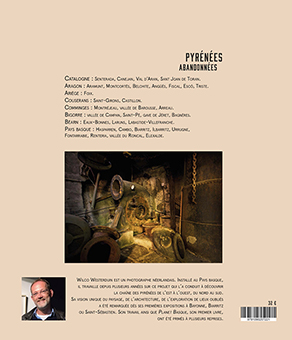 Le nouveau projet de Wilco Westerduin : tellement graphique, tellement surprenant.Après Planet Basque, son premier livre très remarqué, Wilco a parcouru les vallées pyrénéennes à la recherche des lieux, des maisons, des usines, des bordes, des thermes, des piscines, des fermes… abandonnées !Depuis la Catalogne jusqu’au Pays basque, versant espagnol ou français, il a trouvé ces lieux si singuliers qui parlent de la déprise humaine. Tout est fugitif et fragile, nos vies comme nos créations subissent l’érosion du temps et, paradoxale surprise, cette fragilité et cette fugacité sont sublimes, à l’image de la vie elle-même.La préface est rédigée par Patrice Teisseire-Dufour, grand reporter à Pyrénées magazine. Des haïkus (poèmes courts) signés d’Alexandre Hurel, fondateur des éditions Pimientos et Arteaz, prolongent dans la retenue ces photos spectaculaires.Liste des sites visités Catalogne : senterada, canejan, Val d’aran, sant joan de toran. aragon : aramount, montcortes, belchite, huesca, Fiscal, esco, triste. arriège : saint-Girons, Foix. Comminges : montrejeau, Vallée de barousse. Couserans : castillon. Bigorre : tourmalet, saint-Pé, Gave de jeret, bagnères, arreau. Béarn : eaux-bonnes, labastide- Villefranche, larruns. Pays Basque : ilbarritz, cambo, biarritz, urruGne, hasParren, Vallée du roncal, Fontarrabie, Renteria, Elexalde.